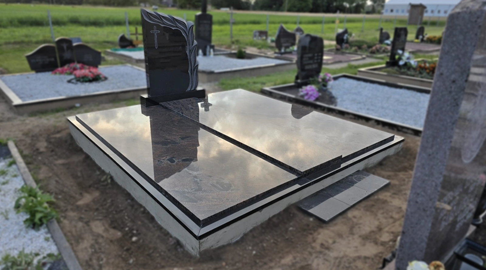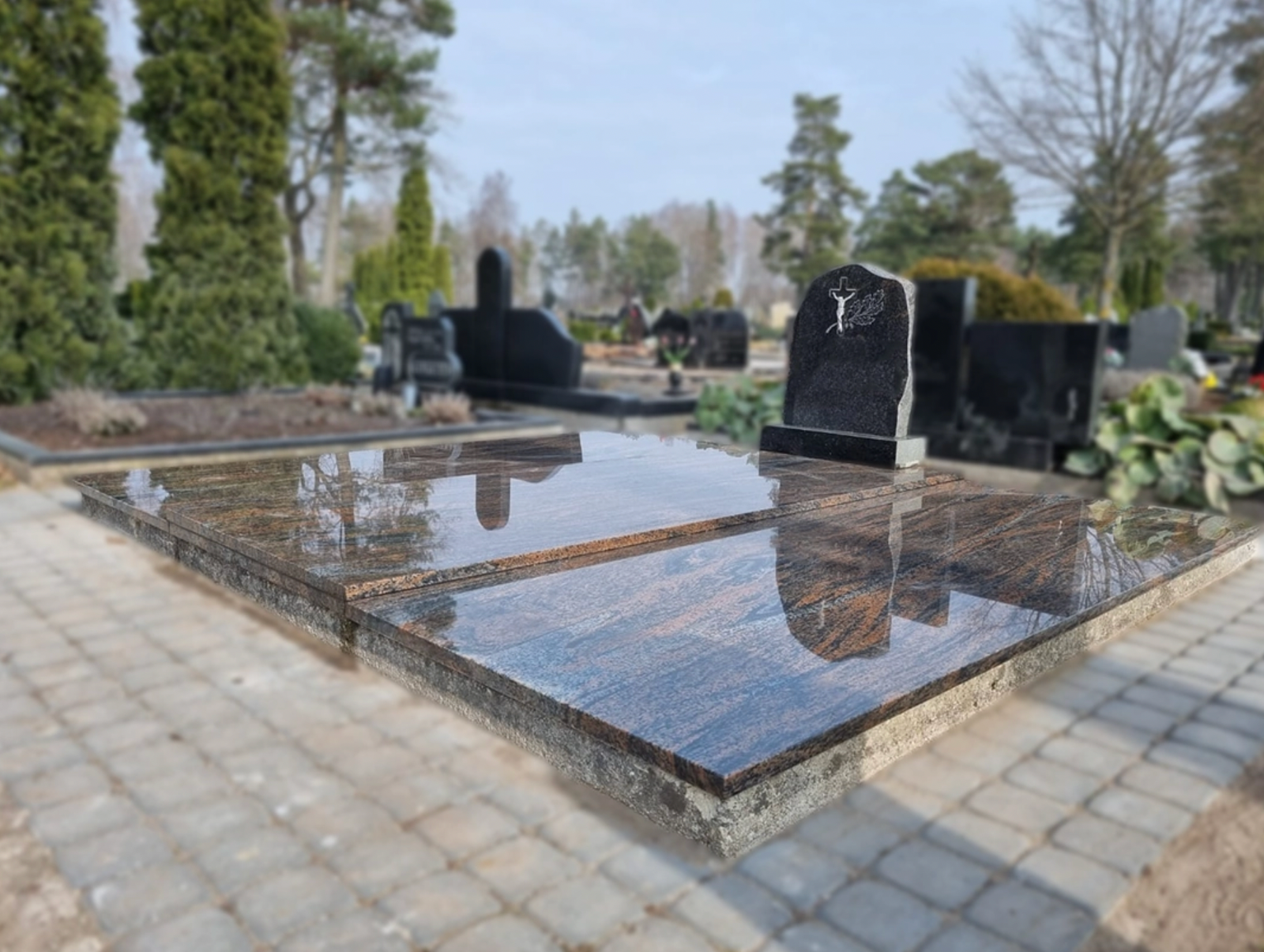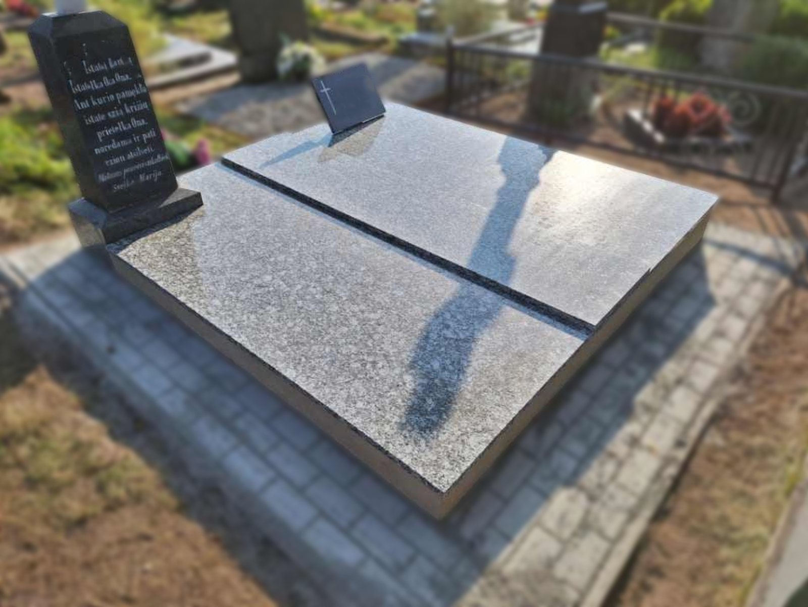 Granitas yra atsparus šalčiui, karščiui, mechaniniams ir cheminiams poveikiams tad puikiai atlaiko visas oro sąlygas ir tarnauja metų metus. Dar vienas granito plokščių privalumas – nesudėtingas asmens laidojimas ateityje. Tinkamai suprojektavus ir atlikus montavimo darbus, plokštę nesunku nukelti, nes nereikia atlikti sudėtingų griovimo ar rekonstravimo darbų, o palaidojus velionį belieka ją grąžinti į buvusią padėtį. Planuojant ateityje laidoti tradicinį karstą, o ne urną, svarbu atsižvelgti į plokščių plotį, kad jį būtų galima be jokių trukdžių įleisti. Tai bus Jūsų individualus pasirinkimas, kokiu būdu norėsite, kad būtų padengtas kapas, o Mes tai išpildysime.