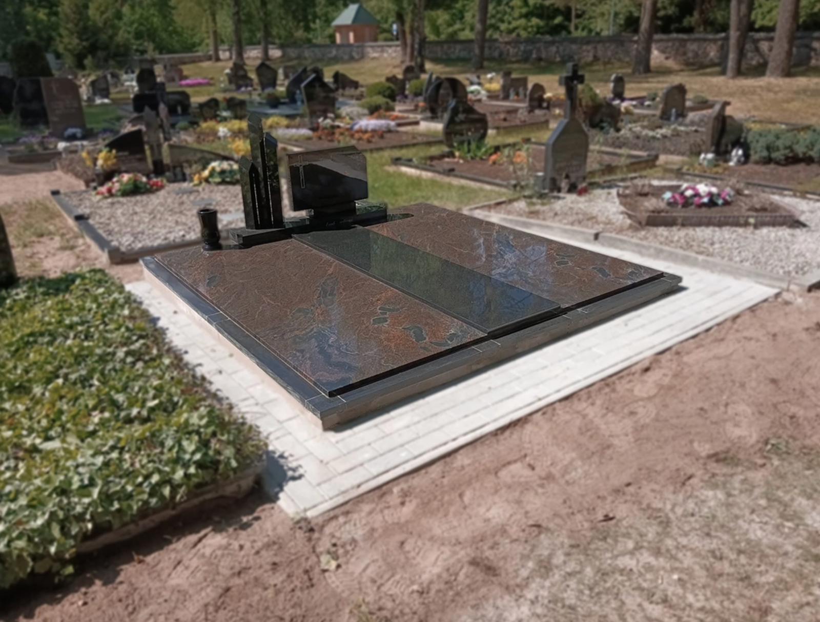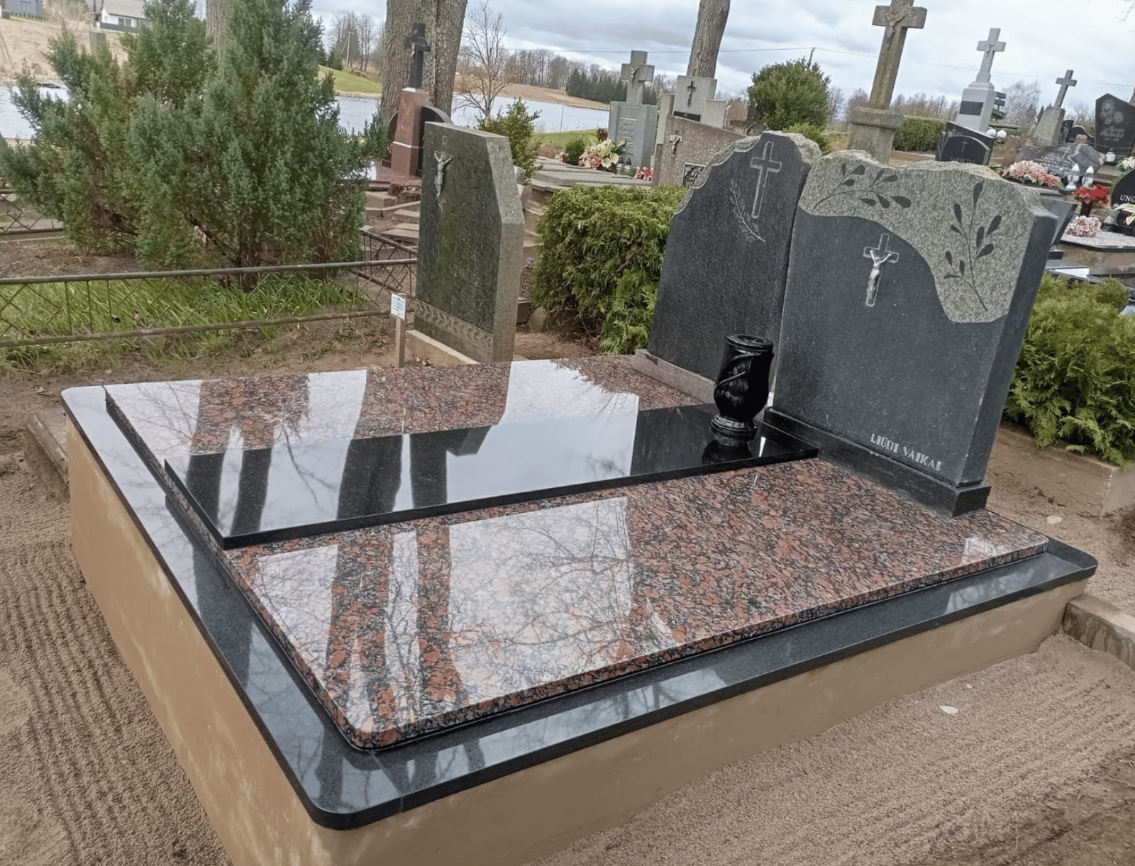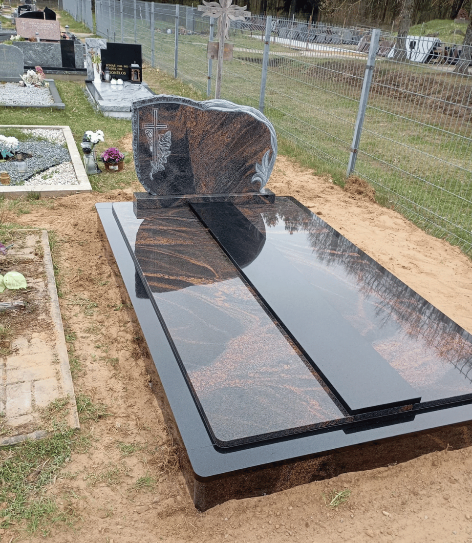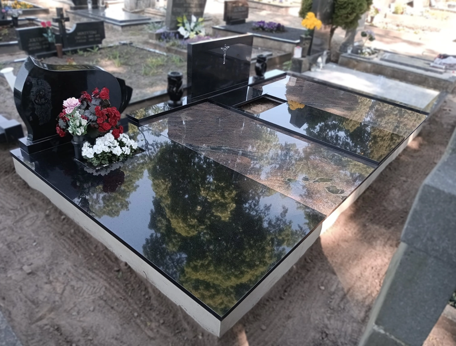 Granitas yra atsparus šalčiui, karščiui, mechaniniams ir cheminiams poveikiams tad puikiai atlaiko visas oro sąlygas ir tarnauja metų metus. Dar vienas granito plokščių privalumas – nesudėtingas asmens laidojimas ateityje. Tinkamai suprojektavus ir atlikus montavimo darbus, plokštę nesunku nukelti, nes nereikia atlikti sudėtingų griovimo ar rekonstravimo darbų, o palaidojus velionį belieka ją grąžinti į buvusią padėtį. Planuojant ateityje laidoti tradicinį karstą, o ne urną, svarbu atsižvelgti į plokščių plotį, kad jį būtų galima be jokių trukdžių įleisti. Tai bus Jūsų individualus pasirinkimas, kokiu būdu norėsite, kad būtų padengtas kapas, o Mes tai išpildysime.